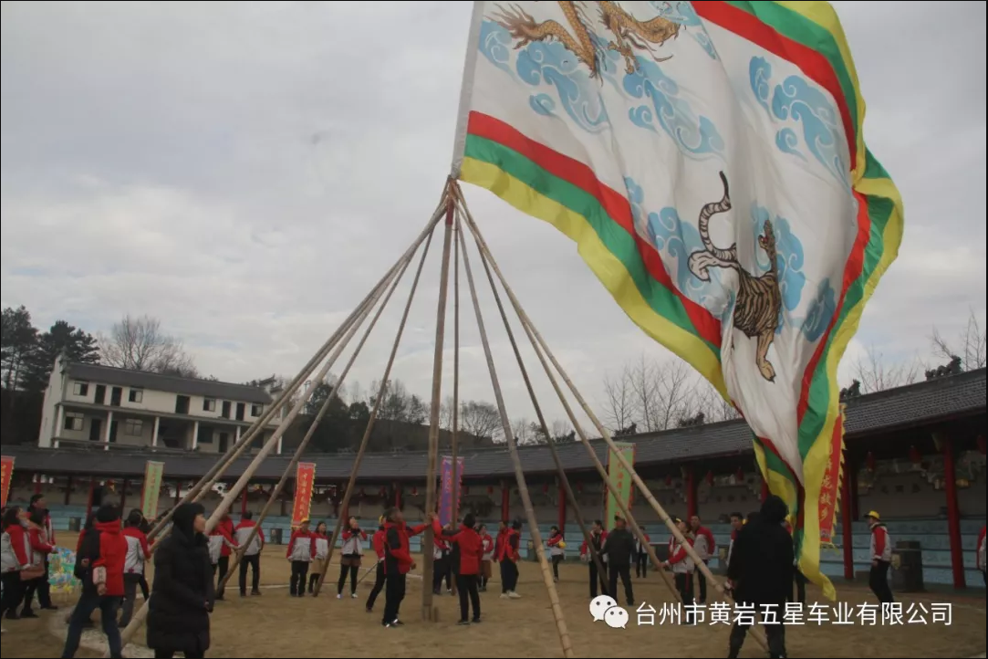 在“群山之祖,諸水之源”的磐安,至今流傳一項氣勢磅礴、驚心動魄的民間文藝習(xí)俗——迎龍虎大旗,而此時五星的家人們也在一聲號令中,眾人一齊用力,同心同德,大旗緩緩豎起也豎起來這面龍虎大旗。 大家圍繞大旗走圈祈福